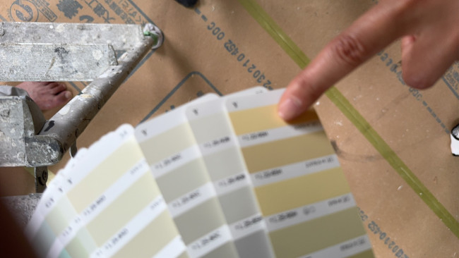 千葉県館山市での建築現場は、家の内部の塗装に関する打ち合わせが行われています。