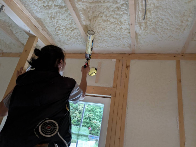 ウレタン吹き付けは、断熱性能を高めるだけでなく、家全体の耐久性も向上させるため、とても重要な工程です。