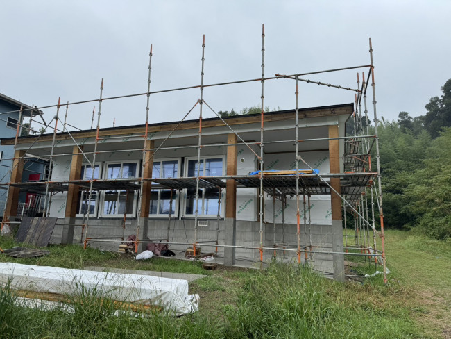 昨日、千葉県の御宿台にて建築中の平屋の家で、吹き付けウレタンの工事が行われました。