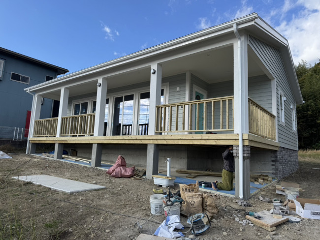 本日からはウッドデッキの塗装を行い、15日に最終清掃を済ませたら、この家は完全に完成となります。