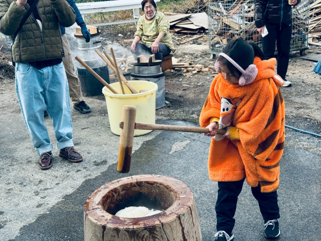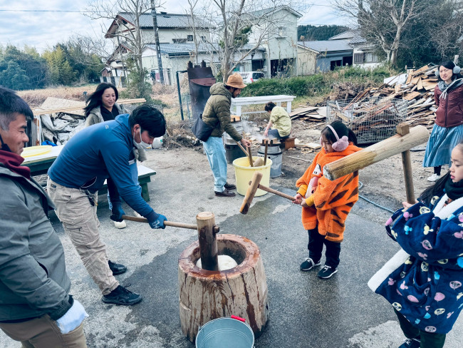 12月30日は、恒例の有限会社つるおか工務店の式地内で餅つき大会を行います。