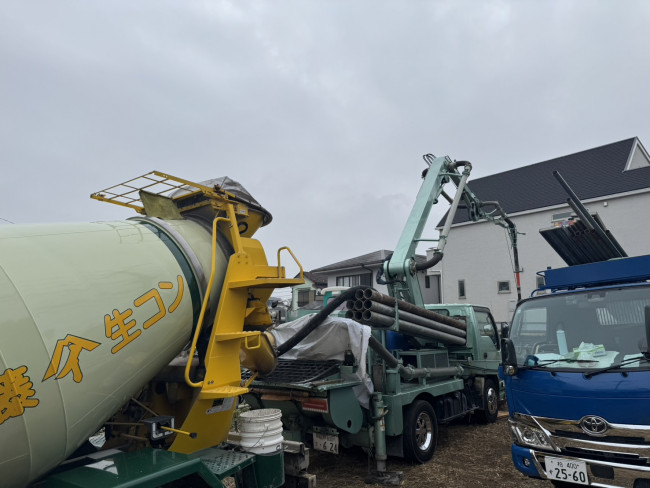 幸いなことに、作業は午後1時からのコンクリート打ちが目的で、何とか時間には間に合いました。