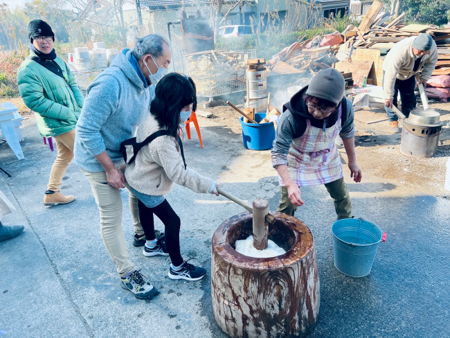 朝8時から12時まで、たくさんの思い出を胸に秘めて、心を込めて餅をついてみませんか?