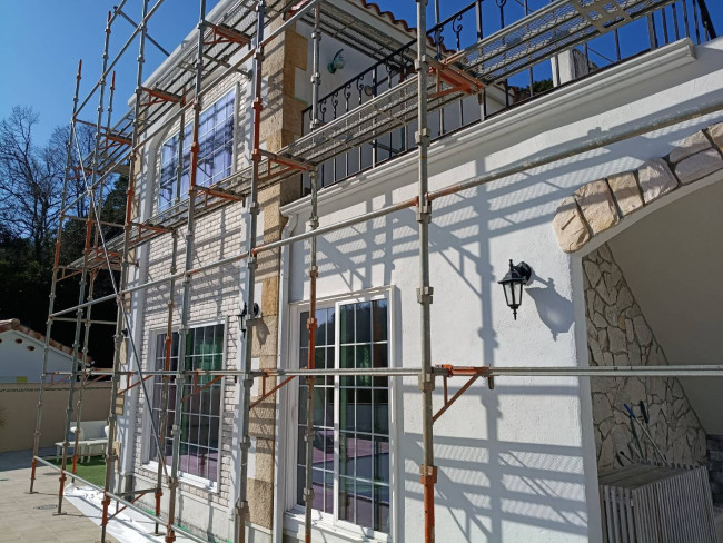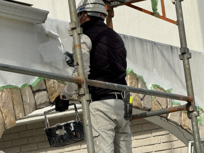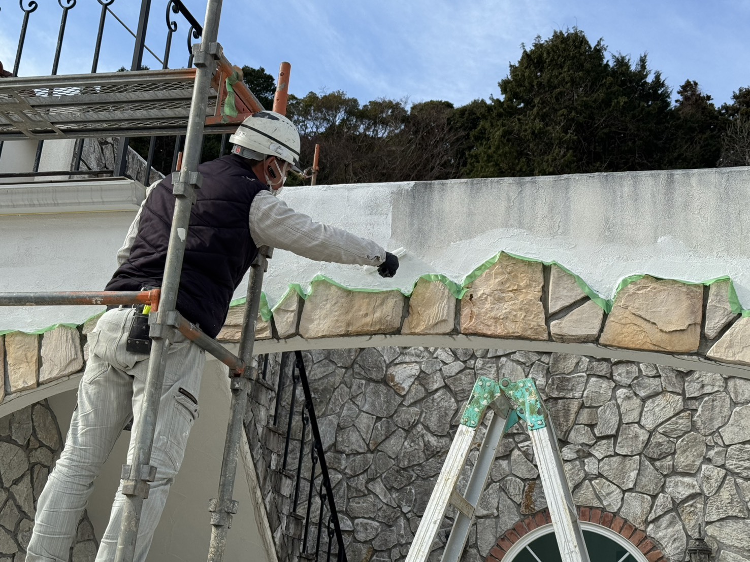 長年の使用により、雨やホコリで汚れが目立ってきたため、ペンキの再塗装を行うのではなく、専用の材料を使用してより耐久性のある仕上げを施しています。