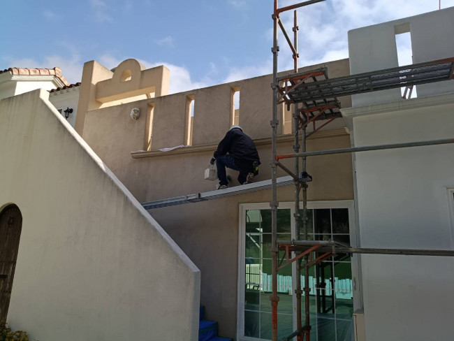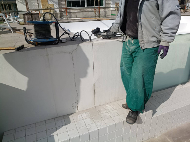 タイル屋の麻生さんは、千葉県富津市にあるスタジオでの外壁リフォームとプールの照明工事において、タイル屋麻生さんの精密な作業を丁寧に進めてます。