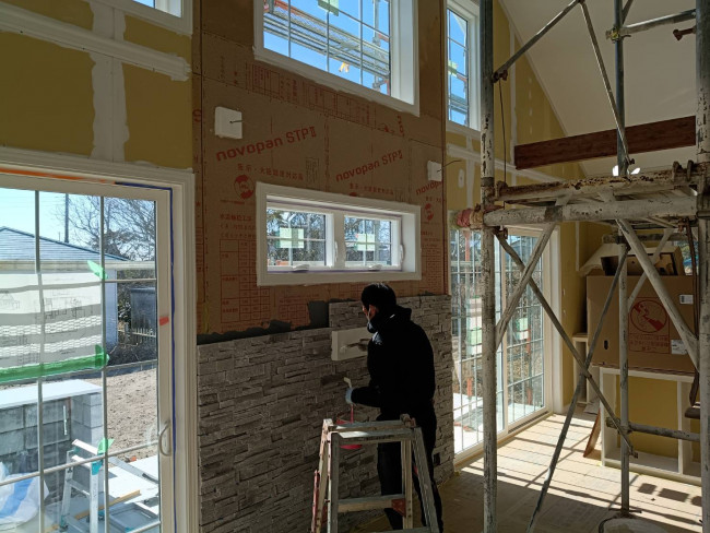 内装では、タイル職人、ペンキ職人、クロス職人、そして電気職人が、完璧な仕上がりを目指して忙しく作業を進めています。