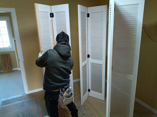 建具も既製品の建具を使用するのでなく一枚一枚お客様の希望の色を塗装してます。