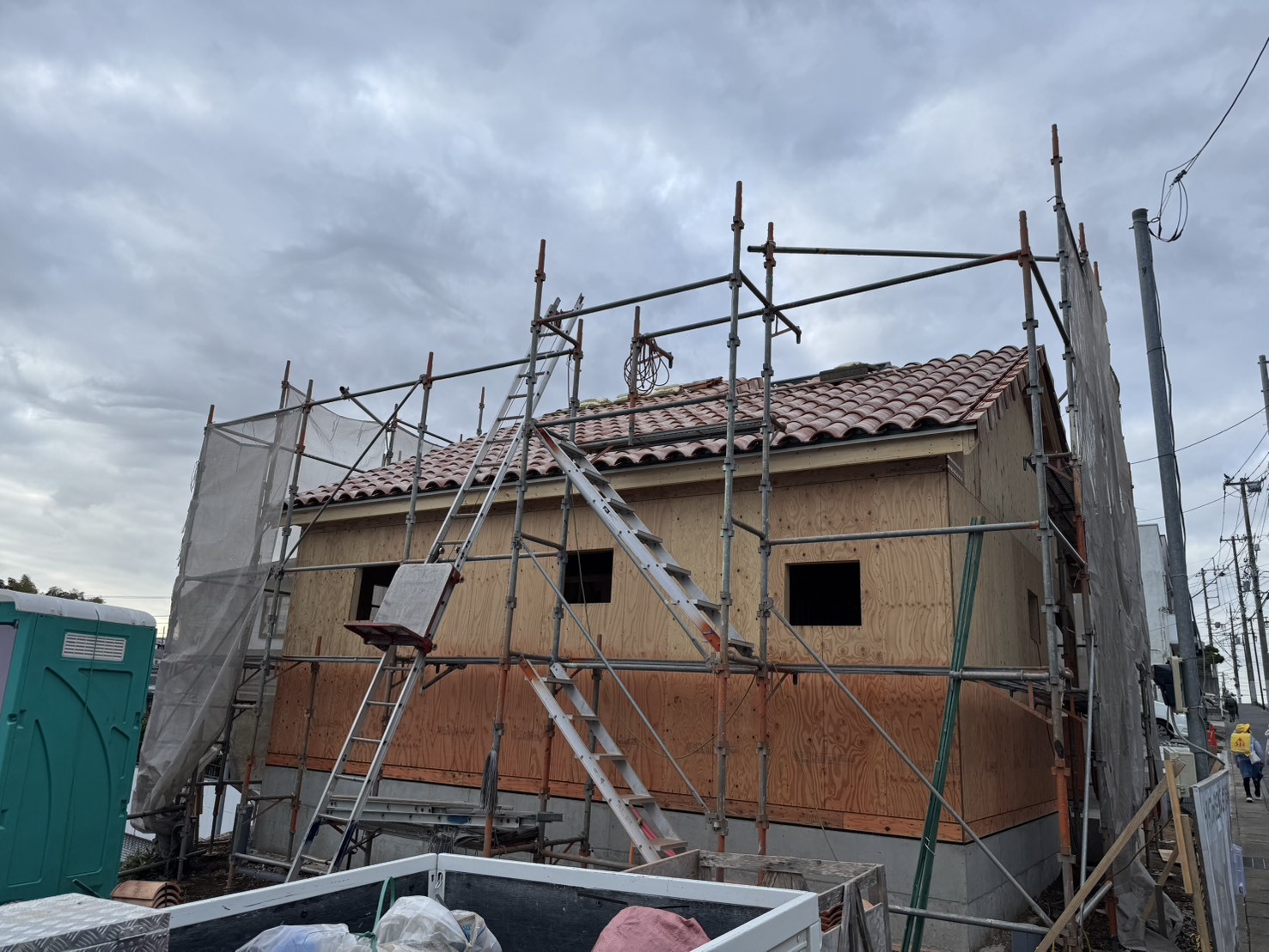 屋根にはスペイン瓦がしっかりと載っており、これからますます可愛らしい南欧スタイルの家になっていくことでしょう。