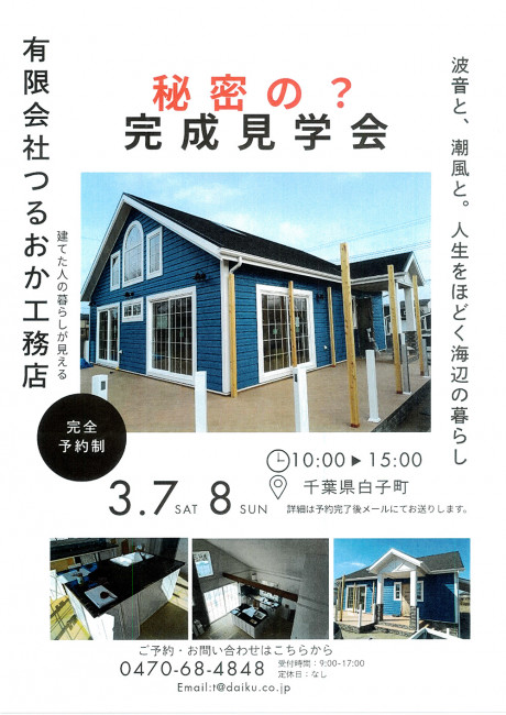 千葉県白子町で秘密の?完成見学会を実施します。