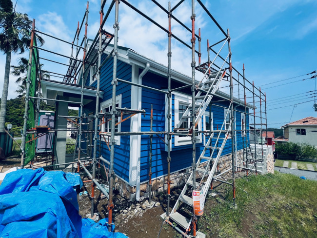 現場では、本物のスペイン瓦を使用した南欧スタイルの一戸建てを建築中で、屋根の造作工事が無事に終了しました。