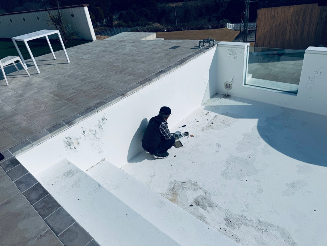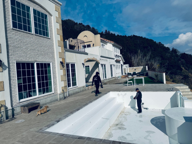 1月には、プールの周りにLED照明を設置する工事を行いました。
