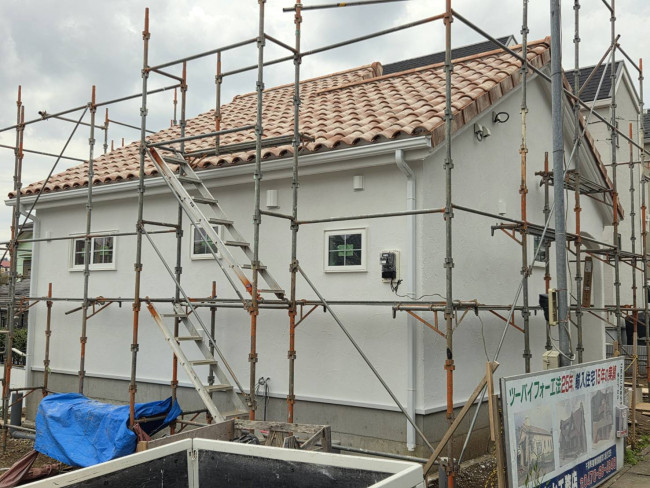 一方、千葉県松戸市では、南欧スタイルの家の建設が順調に進んでおります。